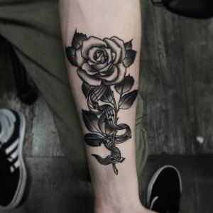 某龙虾店老板靳先生小臂玫瑰纹身图案