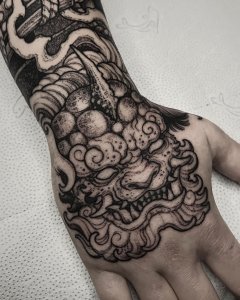 北京石园南社区搞数码产品店的强先生手背斯芬克斯猫纹身图案