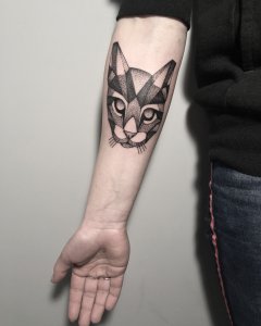 北京开服装店的王小姐小臂上的狮子纹身图案